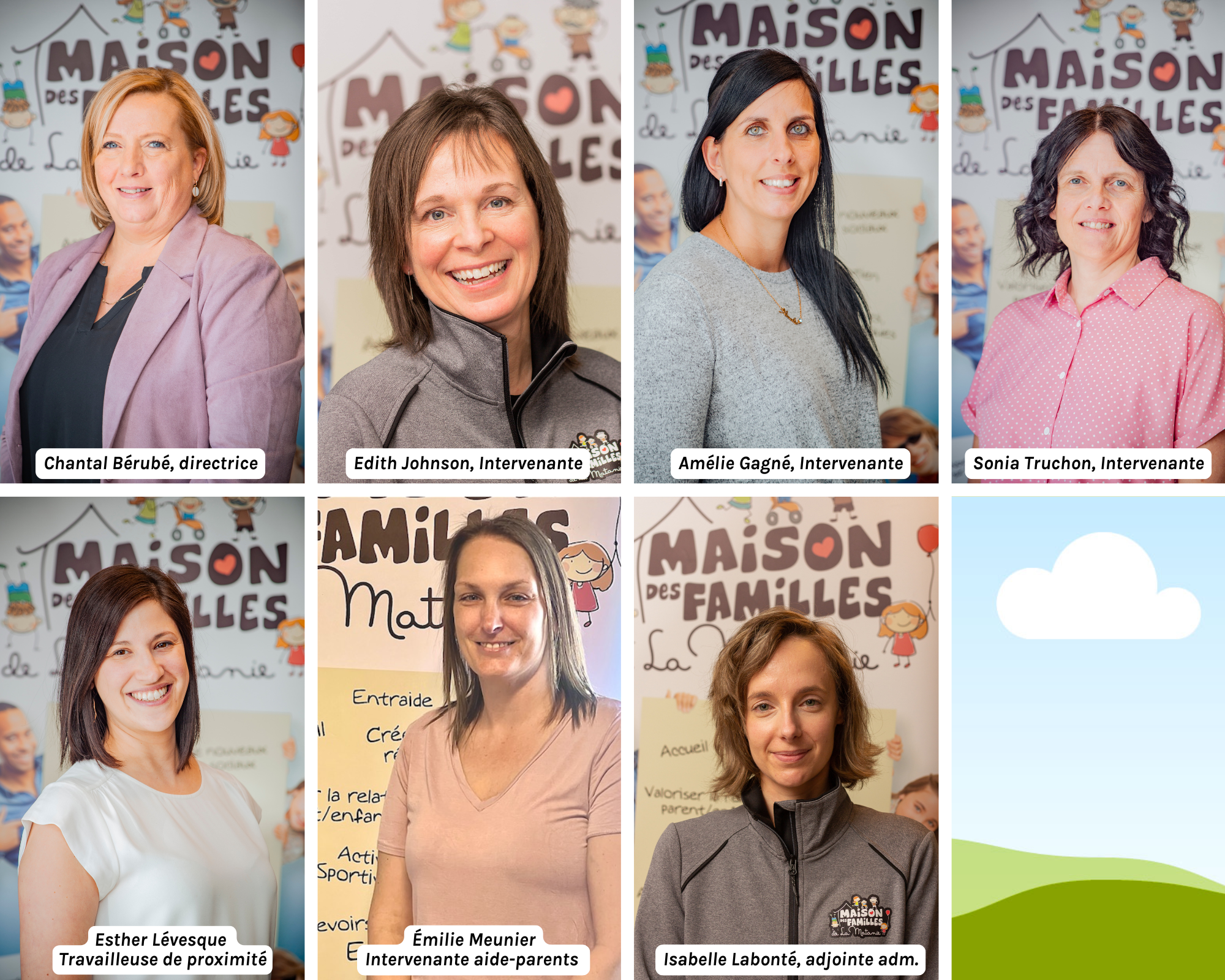 - En 2014, après plusieurs directrices, un nouveau vent de changement souffle à la Maison de la Famille, maintenant appelée Maison des Familles de la Matanie. Il y a un nouveau conseil d’administration sous la présidence d’une femme de cœur qui n’a pas compté ses heures pour continuer la mission de la Maison des Familles, madame Élise Turcotte. Madame Turcotte a à son bord, Monsieur Atef Guirguis, Mesdames Suzy Wright, Nancy Sirois, Josiane Bouchard, Caroline Gauthier et Viviane Oueko Kamga. Une nouvelle directrice a été engagée en janvier 2015 : Chantal Bérubé, mère de 2 enfants, nouvellement éducatrice spécialisée et ayant une expérience de gestion dans un autre domaine. Elle saura actualiser l’image de l’organisme et renouveler une clientèle grandissante dans notre région.